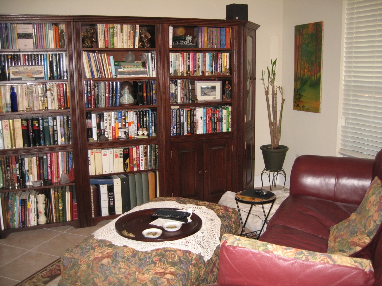 We're replacing the carpet in this TV/Library room with ceramic tile.